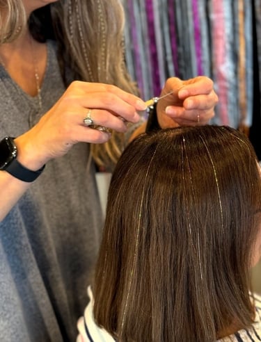 Each sparkle is hand-tied to a single strand of hair using a tiny latch hook. This technique causes no damage and lets the sparkle behave like your natural hair-you can brush, wash, color, cut, curl, and straighten to temperatures ranging from 375 to 425 degrees.