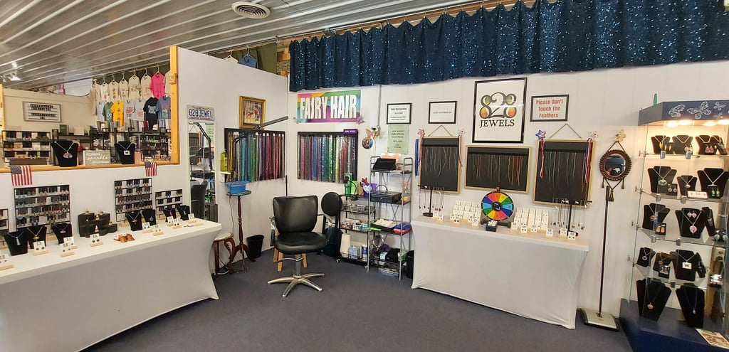Join us at the market to explore fairy hair sparkles, hair feathers, and handmade jewelry collections.